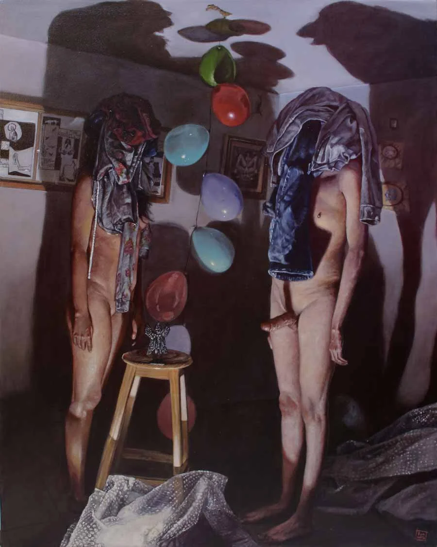 Pierre is Abril's friend whom I mentioned earlier in this piece, I met this colorful couple during Semana del Arte in Mexico City. While enjoying a fermented pineapple drink (tepache), we look around the crazy house of Pierre and Abril. The most striking works are by Pierre. What is immediately noticeable is the knowledge and appreciation for ancient art movements, and their modern interpretation. He uses the aesthetics of the chiaroscuro in combination with alienating digital collages and edits.